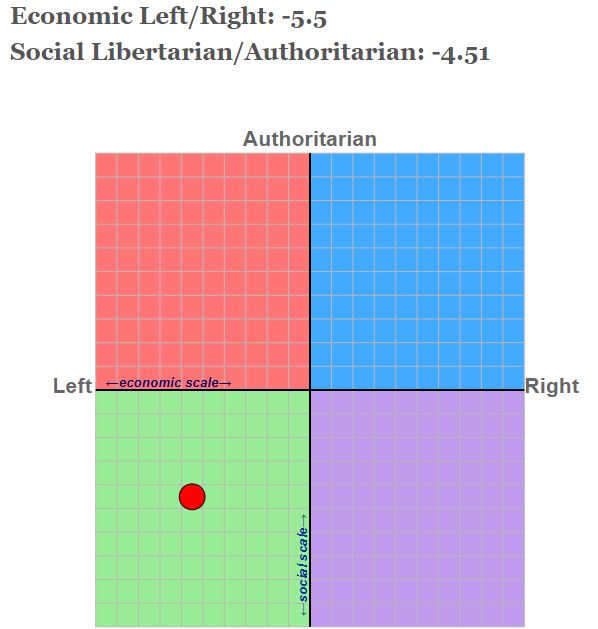 My personality types are; INTJ-T, the architect. Type 8, the challenger. Disc type C, caution. PATH, the achiever. OCEAN; 73, 78, 83, 81, 90. Politically, I'm a Social Libertarian on the Political Compass. BDSM-type things are; Switch, rope bunny, vanilla brat & brat tamer.